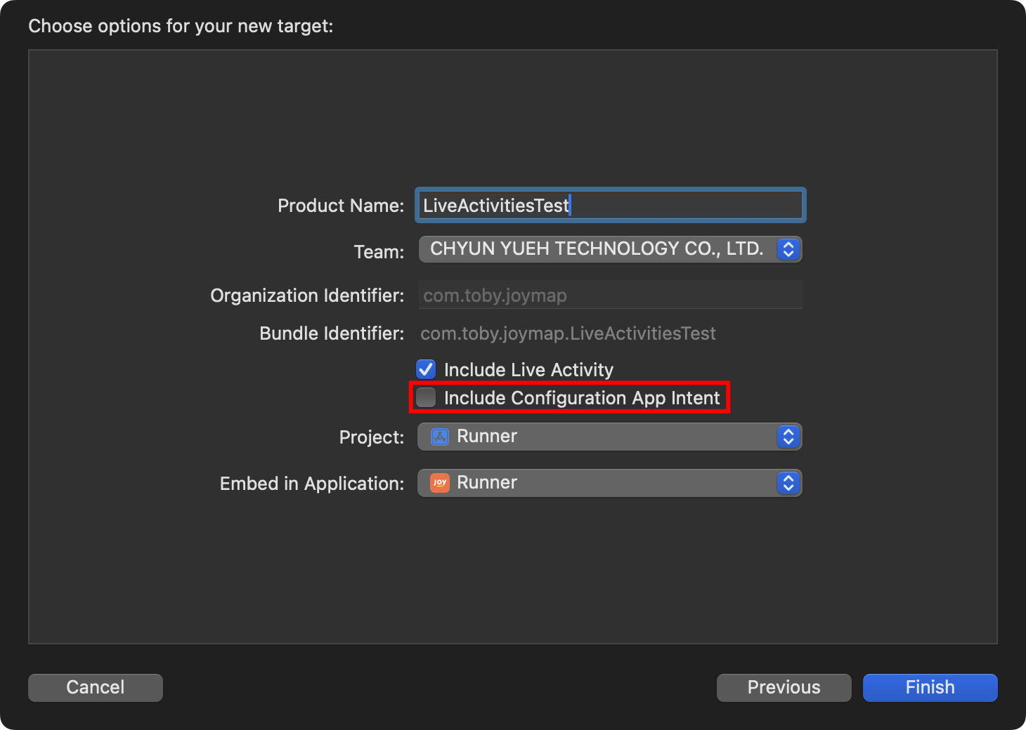 1. 建立 Widget Extension 時不要勾選 Include Configuration App Intent